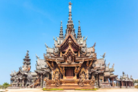 タイの独創的な建築技術と、精巧な木彫りの彫刻の数々が見られます。彫刻の文化的意義や、古代の地球観、古代の知識、東洋哲学の表現をご覧いただけます。金属の釘1本使われていない全て木造の建物は、ヘルメットを着用してご見学いただきます。
