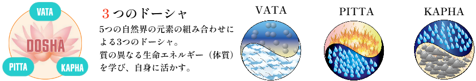| 15:00~16:30 | アーユルヴェーダ基礎講座(エレメントとドーシャ) | 90分 |