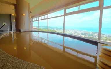 ろ過・加温・加水を一切していない自然の恵みそのままの源泉かけ流し温泉をご利用いただけます。眺望抜群で昼は青い空と海、夜は南城市の夜景と星空を楽しめます。